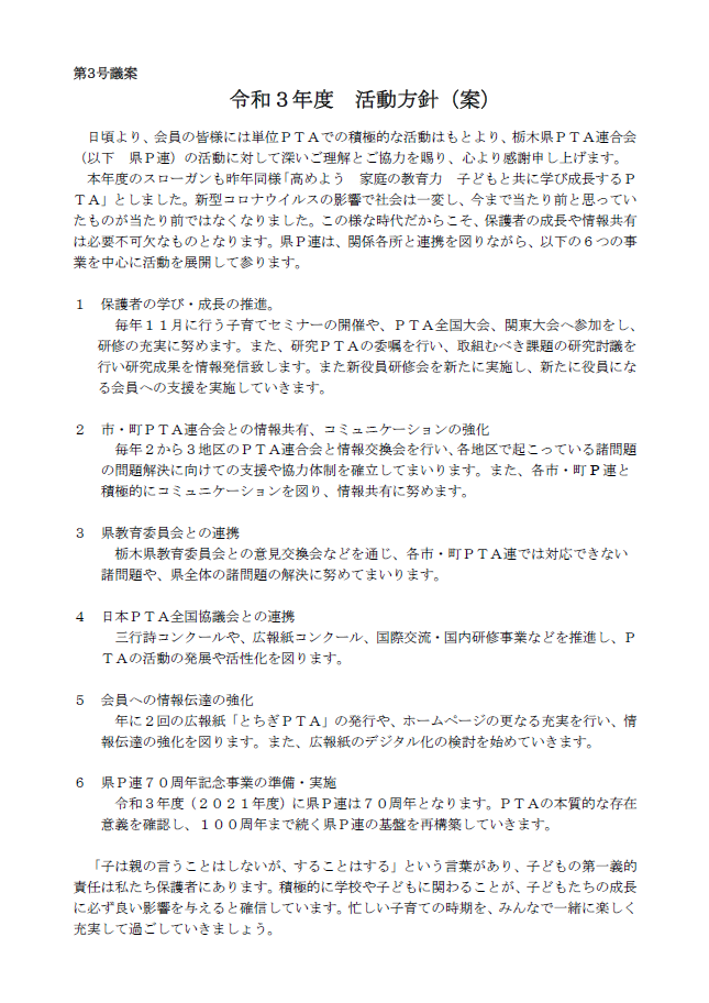 タイトル 基本方針・活動目標・活動計画・事業計画(案)